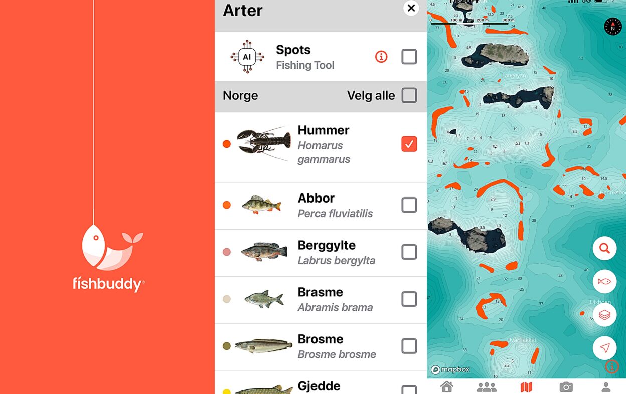Når du i tillegg kan lagre teinelokasjoner med Waypoints, følge reglene direkte i appen, og lære mer om agn og teknikk – da har du alt du trenger for å bli en treffsikker hummerfisker!